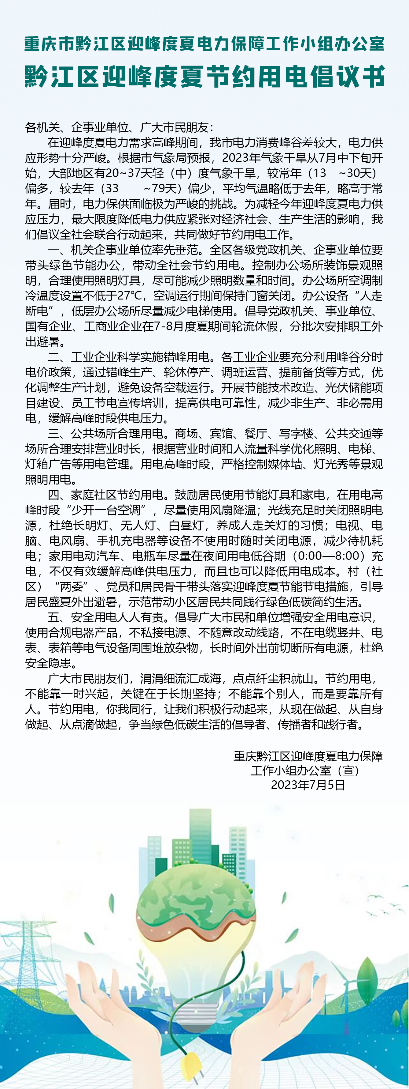 在线博彩 迎峰度夏电力保障工作小组办公室在线博彩 迎峰度夏节约用电倡议书