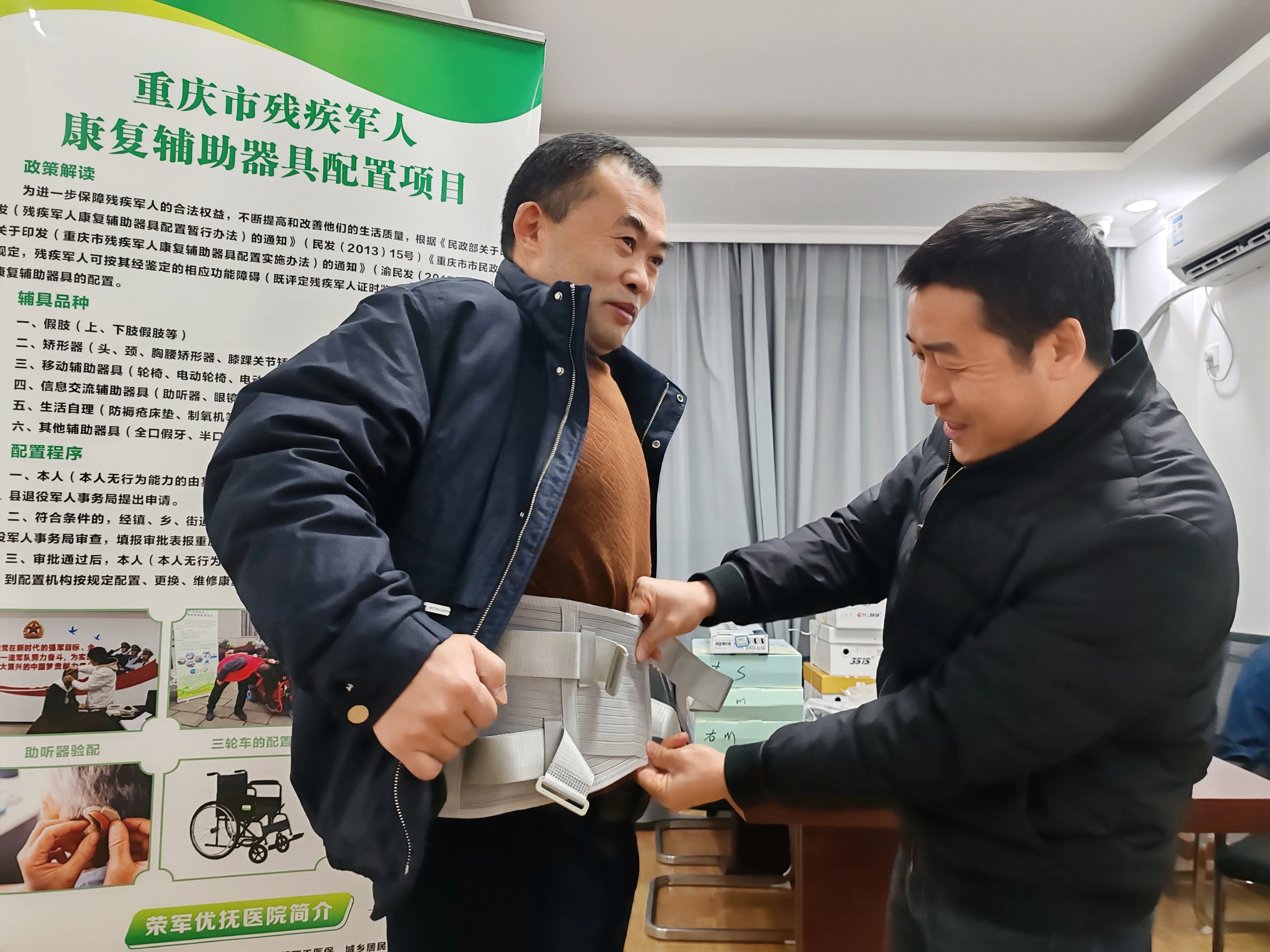 12月20日,区退役军人事务局开展残疾军人康复辅助器具配置活动,现场为20余名残疾退役军人测量助听器、助视器等辅助器具相关数据,建立档案跟踪服务,并为他们发放了道路型电动三轮轮椅车、拐杖、助行器等辅助器具100余件。区退役军人事务局将不断强化抚恤优待工作服务,进一步关注、关心、服务好残疾军人,让退役军人抚恤优待政策真正落地,切实把党和国家的关心和温暖送到优抚对象的心坎上。
