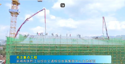 【关注重点工程】 渝湘高铁黔江站综合交通枢纽旅客集散中心主体封顶