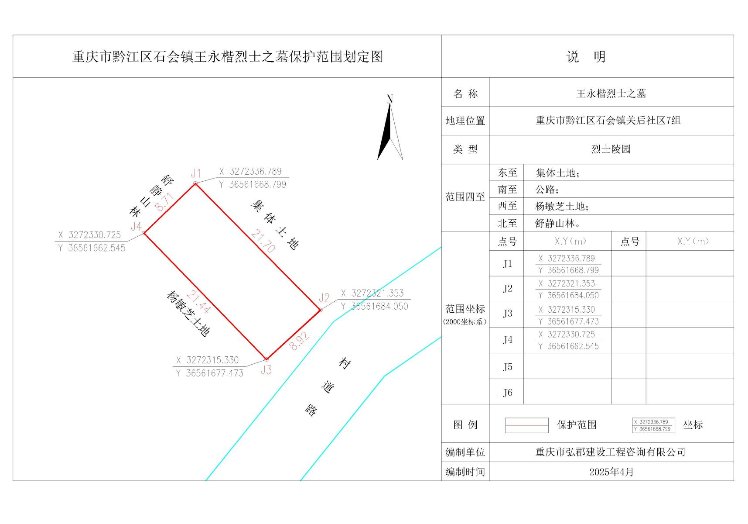 保护范围:东以姚大举山林为界;南以姚大举山林为界;西以姚大举山林为界;北以姚大学田地为界。
