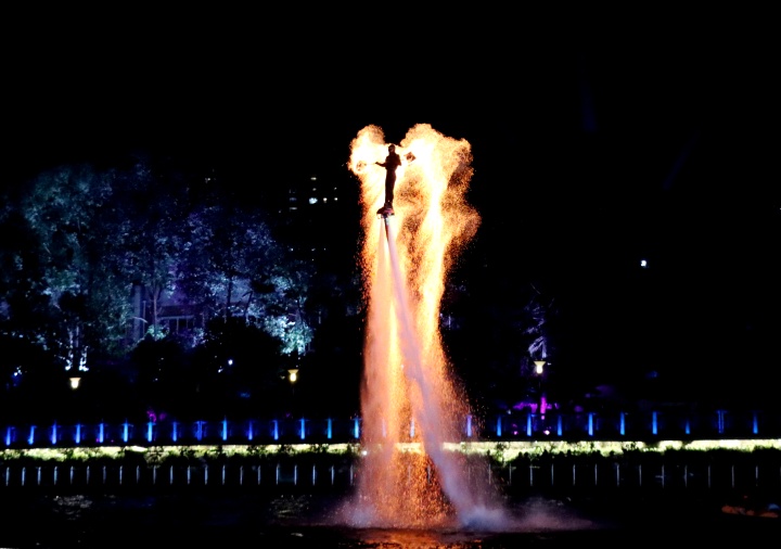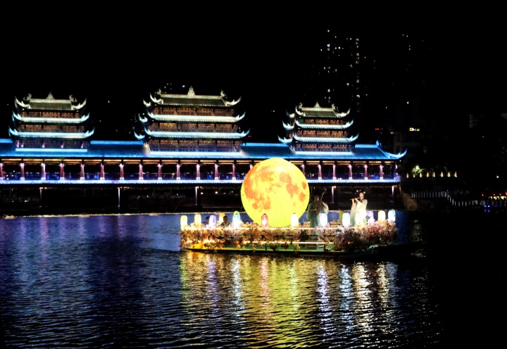 双节期间,武陵水岸歌舞升平,美学市集热闹甚欢。持续推出的歌舞表演、水上飞人、秋月共赏、民俗体验、品鉴美食、购物娱乐等“庆国庆、过中秋”活动,让当地市民和游客在欢声笑语中感受节日的浓厚氛围与家国情怀。(记者 李诗素 文/图)