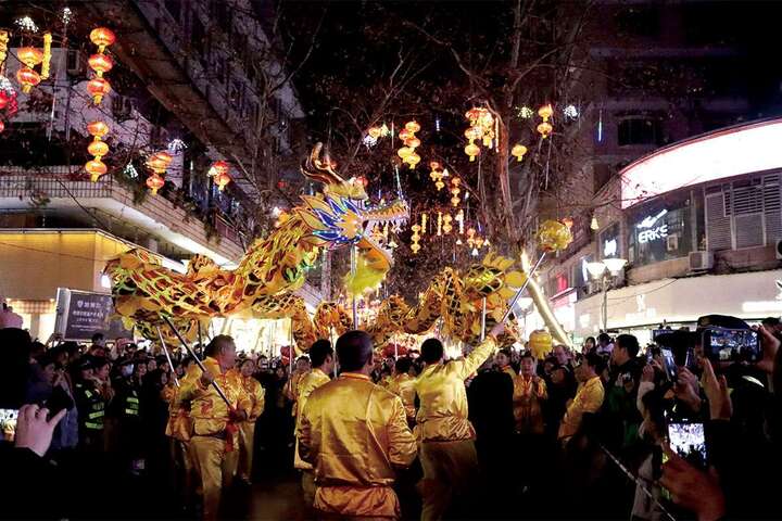 英歌队点亮元宵节 龙狮舞舞动黔江城