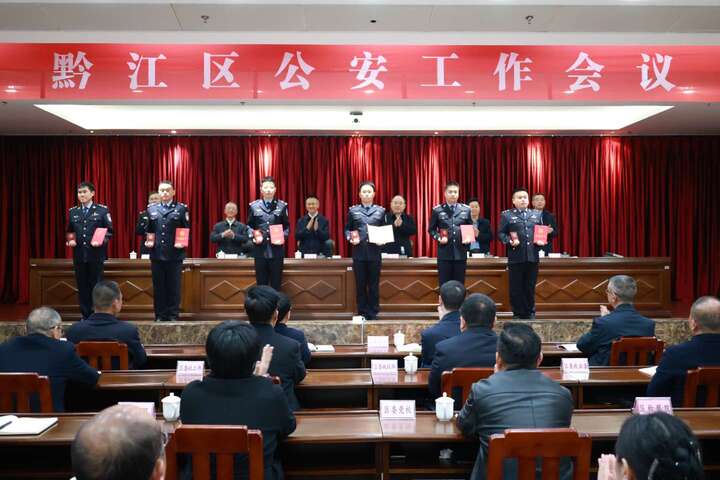 会议通报了近五年来黔江公安工作情况,表彰了2025年度先进集体和个人(如上图),与会同志观看了2025年度公安工作汇报片。(记者 罗跃 文/图)