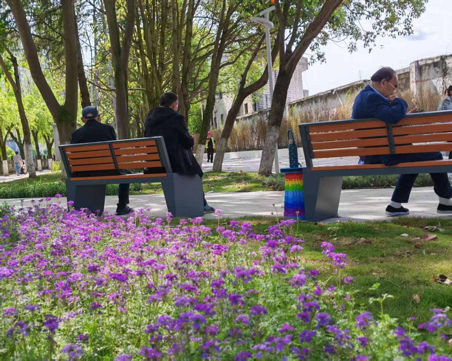 改造让“水清岸绿”真正落了地。各种花木错落有致,四季都有颜色。春天花团锦簇,夏日绿树成荫,秋来桂香满园,冬季常青依旧。观景节点点缀其间,走几步就能停下来看看河、吹吹风,放空自己。